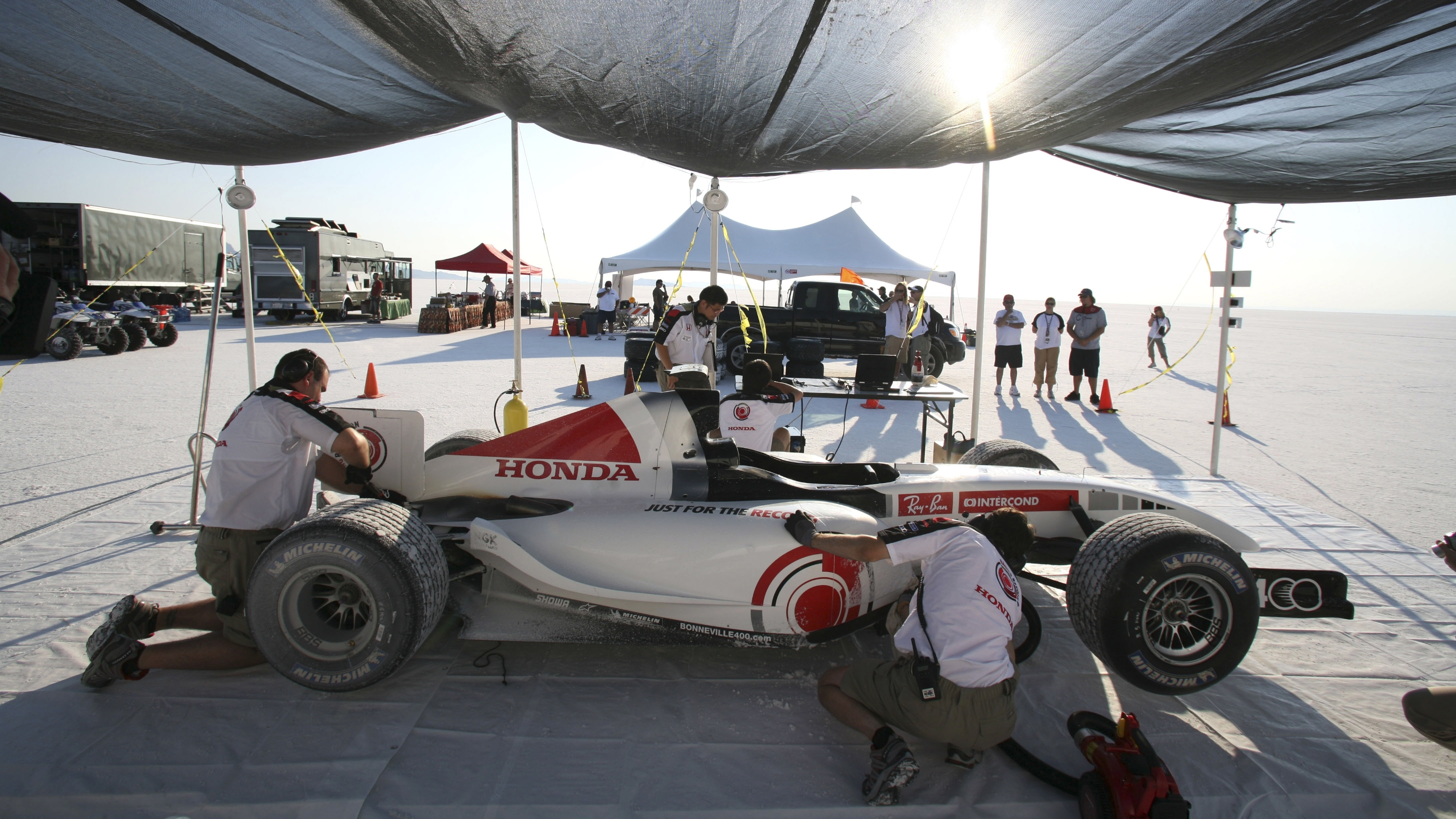 Возвращаемся в 2006 год, тогда тест-пилот Хонды, южноафриканец оказался замешанным в одном из самых странных параллельных проектов, которые будут опробованы командой Формулы 1 - развить скорость в 400км/ч (248.5 миль в час). На бумаге выглядело все просто: возьмите фактически стандартную машину Формулы 1 (та же самая машина, которая участвовала в гонках, которую пилотировали Дженсон Баттон и Такумо Сато в 2005 году) на всемирно известное Соленое Озеро Бонневиль, и посмотреть, как быстро она сможет разогнаться за милю.