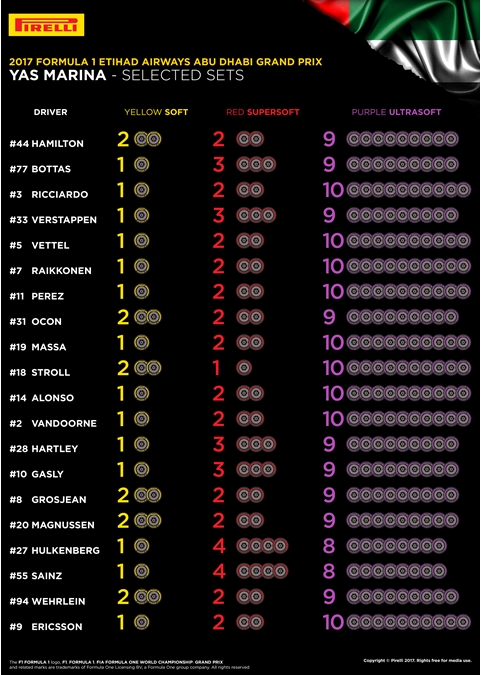 Лучшие шесть пилотов в чемпионате, чемпион мира Льюис Хэмилтон-единственный выбор в пользу двух комплектов программы, с остальными пятью все придерживаться только одного.